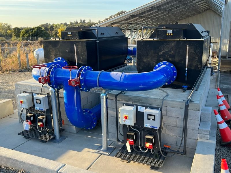 Drought conditions in California and subsequent rising supply water temperatures at ARTH posed a severe risk to hatchery production, which threatened the California fisheries dependent on successful fish production efforts. Emergency federal funding was allocated to address the problem. Integrated Aqua Systems (IAS) was selected to design, build, supply and commission an incoming water filtration and disinfection system as well as a flow-through chilling system to mitigate the risk to hatchery production.