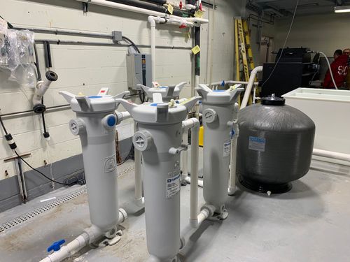 The intake system was designed to take raw seawater from Long Island Sound and bring it down to 1 micron. The RAS systems were designed to provide students with hands-on aquaculture experience and conduct research in sustainable aquaculture practices. The systems were designed and fabricated with state-of-the-art equipment, including CM Aqua Drum Filter, SITA HDPE UV Sterilizer, BioE Biofilters, FLV Series Bag Filters, Waterco Media Filters, Delta Hydronics Chillers, protein fractionators, and multiple pump systems.